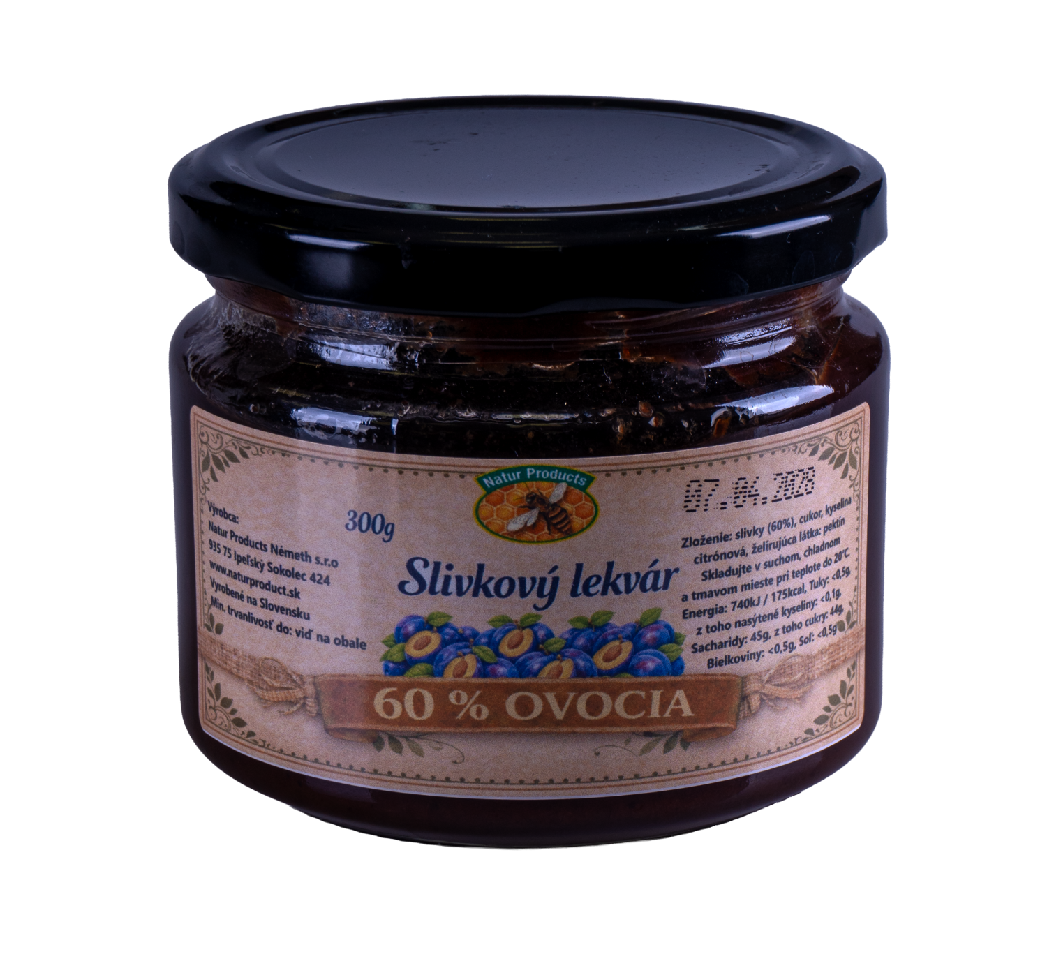 Zloženie: slivky (60%), cukor (35%), regulátor kyslosti: kyselina citrónová, želirujúca látka: pektín,